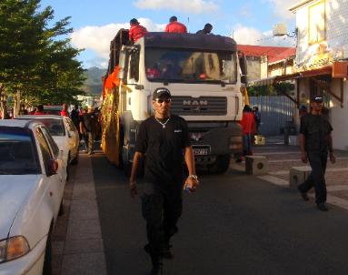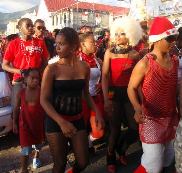having a fun time. Vaval was being paraded around the town, and everyone joined in behind the