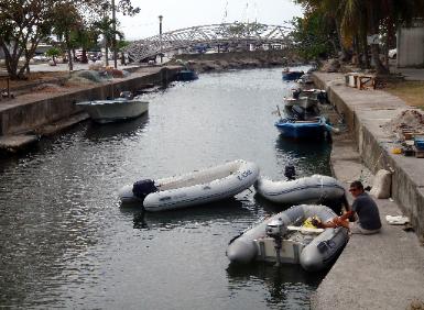 up the local river, tying up alongside the local fishing boats. We even enjoyed a few meals out