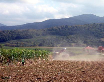 farm was cutting sugarcane, and it was fascinating to watch the machine cut the sugarcane, strip