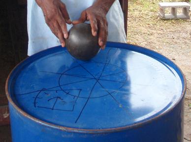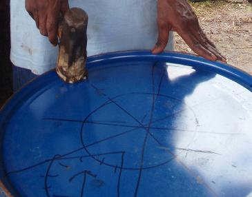 He informed us that the length of the side of the pan determined the range of its sound. The