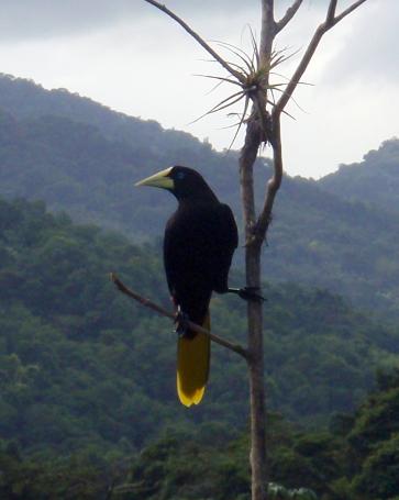 of our favorite birds was the crested oropendola corn bird with its yellow tipped tail. This bird