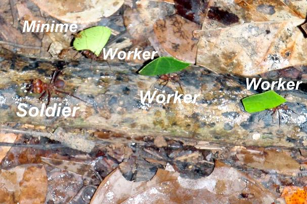 which did most of the cutting and carrying of the leaves; and miniature workers called minimes