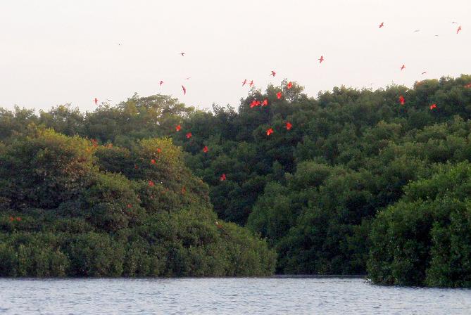 sight, and it just kept getting better as more and more flocks arrived. The scarlet ibis stood out